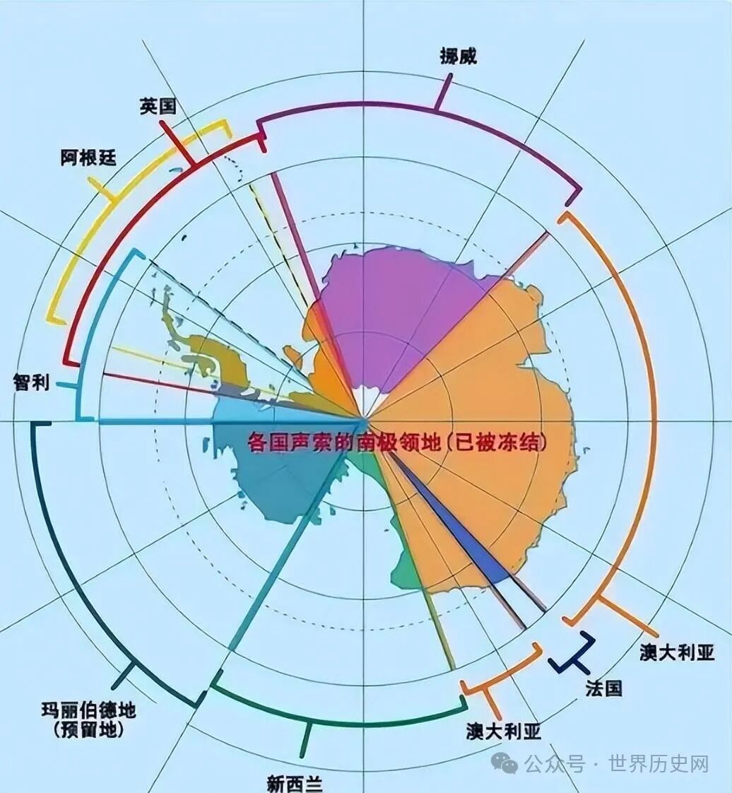 除此之外,许多国家也都对南极洲进行了领土划分,甚至在国际上产生了冲突,对此为了缓解矛盾,1959年12月1日,签订了《南极条约》,主要目的就是保证南极洲地区在进行科研时保持自由,不能在上面进行军事性质活动和领土主权主张。