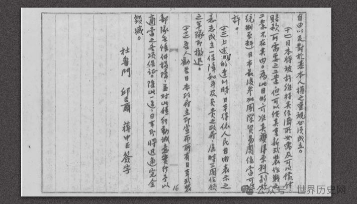 对于这封密电,冈村宁次是深感震惊的,他已经从中嗅到了不同寻常的信号,那就是“是战是和”并不是由日本军部决定的了。