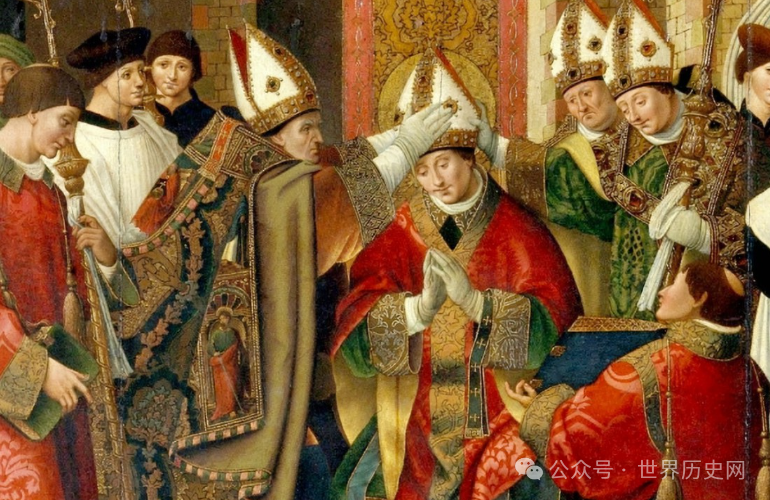 后来,法兰克国王查理曼大帝四处征战,罗马教皇为了对抗拜占庭人的威胁,迫不及待地加封他为罗马皇帝。