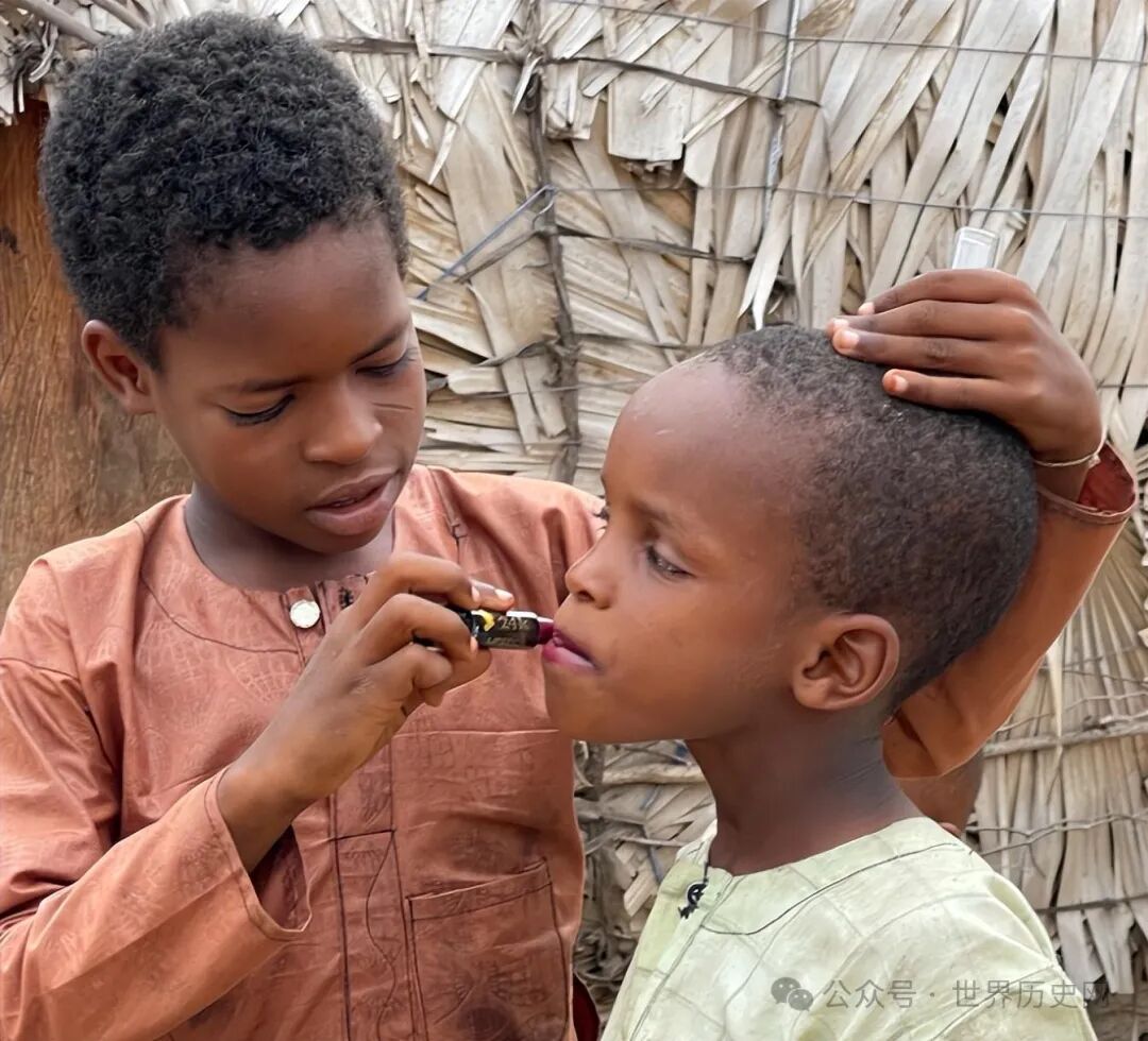 临别时,导游取出口红分发给妇女们,他说得一点儿没错,富拉尼妇女一看到口红,一张张脸立马化成了软软的棉花糖,连呼吸都有了甜蜜的气息。眼尖的孩子们见到了,又蜂拥而上,这一回,母亲和孩子,一同陷入了混乱的争夺战里……其中一个顽童,抢到了一支唇膏之后,转身便在另一名男孩唇上、脸上乱涂,恣意把唇膏当画笔来玩!