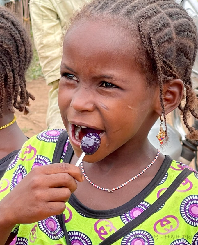 驻当地中国大使馆的友人提醒我的话,不断地在我脑中回旋:“富拉尼族凶悍霸道,常常窃取其他部族的牛,引发争端时,他们便以武力解决。他们性子火爆,动辄得咎,难以相处,别的部族都很怕他们。你们要去他们的聚居处,最好选择白天,因为白天只有妇孺在家,比较安全。”我告诉导游,我想带点礼物,他建议我买口红和棒棒糖。