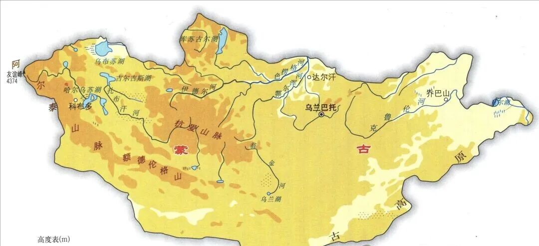 另一方面,蒙古整体地势是西高东低、北高南低,全国第一高峰,是海拔4653米的乃拉姆达勒峰,而海拔最低点呼赫湖只有553米;