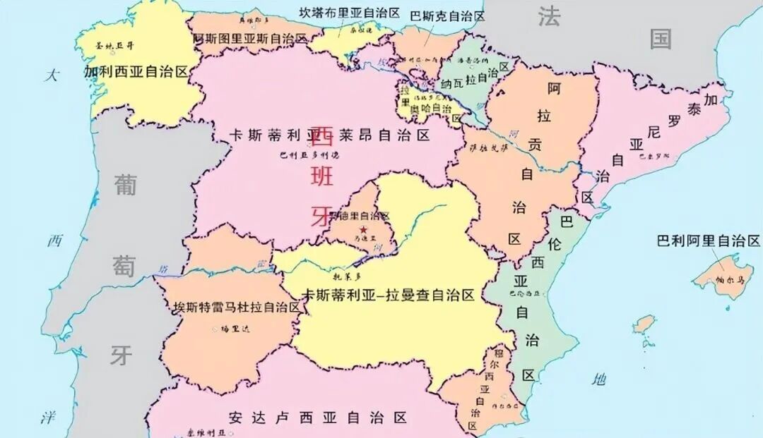 从地图上可以看出,伊比利亚半岛上存在西班牙和葡萄牙两个国家,其中西班牙的国土面积明显比葡萄牙要占优势。事实也是如此,葡萄牙还没有西班牙的1/5大,而且葡萄牙的人口也只有西班牙的1/5左右。按理来说,一个相对独立的地理单元内如果存在两个或两个以上的国家,必然是很难和谐相处的。
