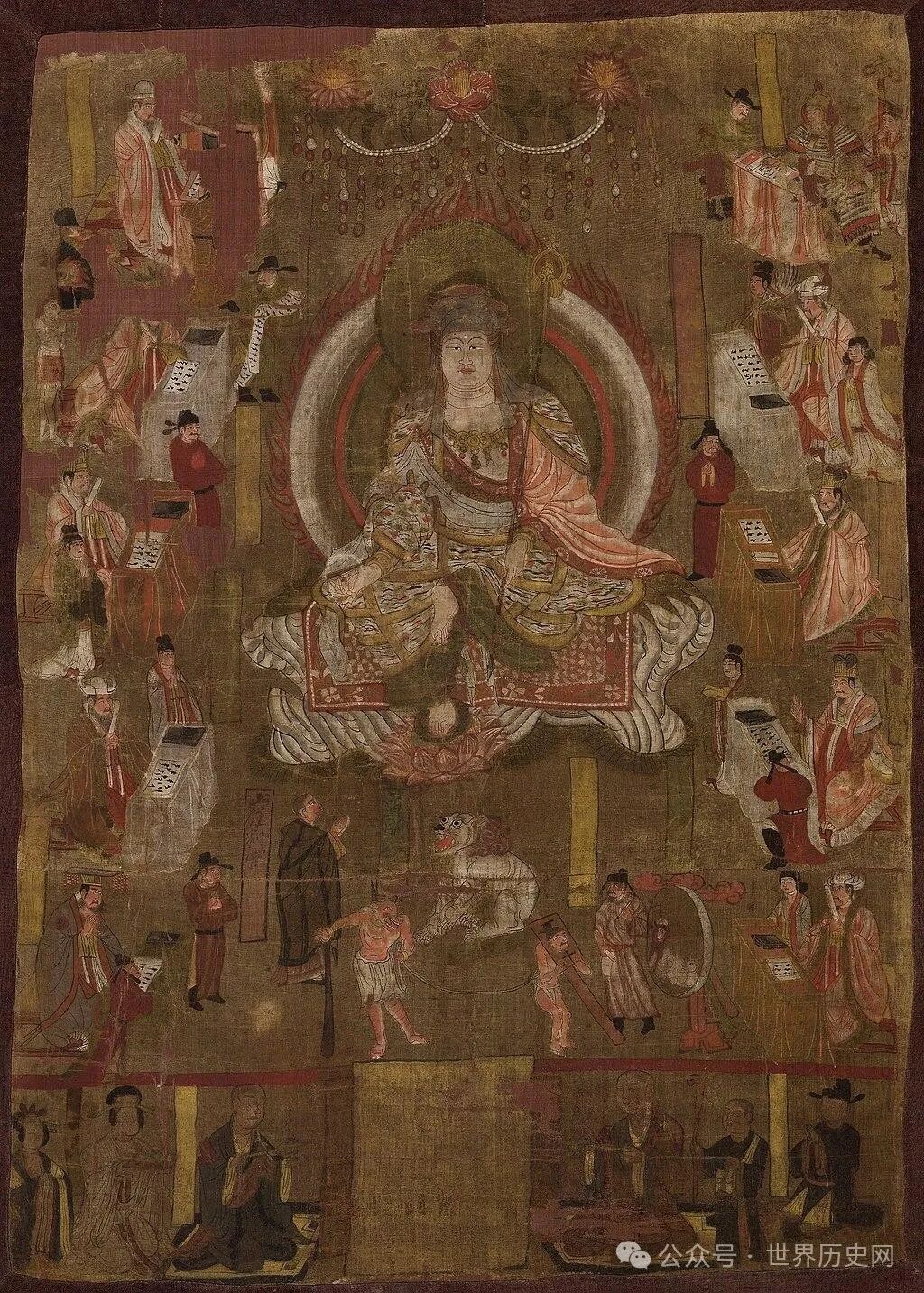 敦煌五代绢画《地藏十王图》,9世纪晚期-10世纪早期