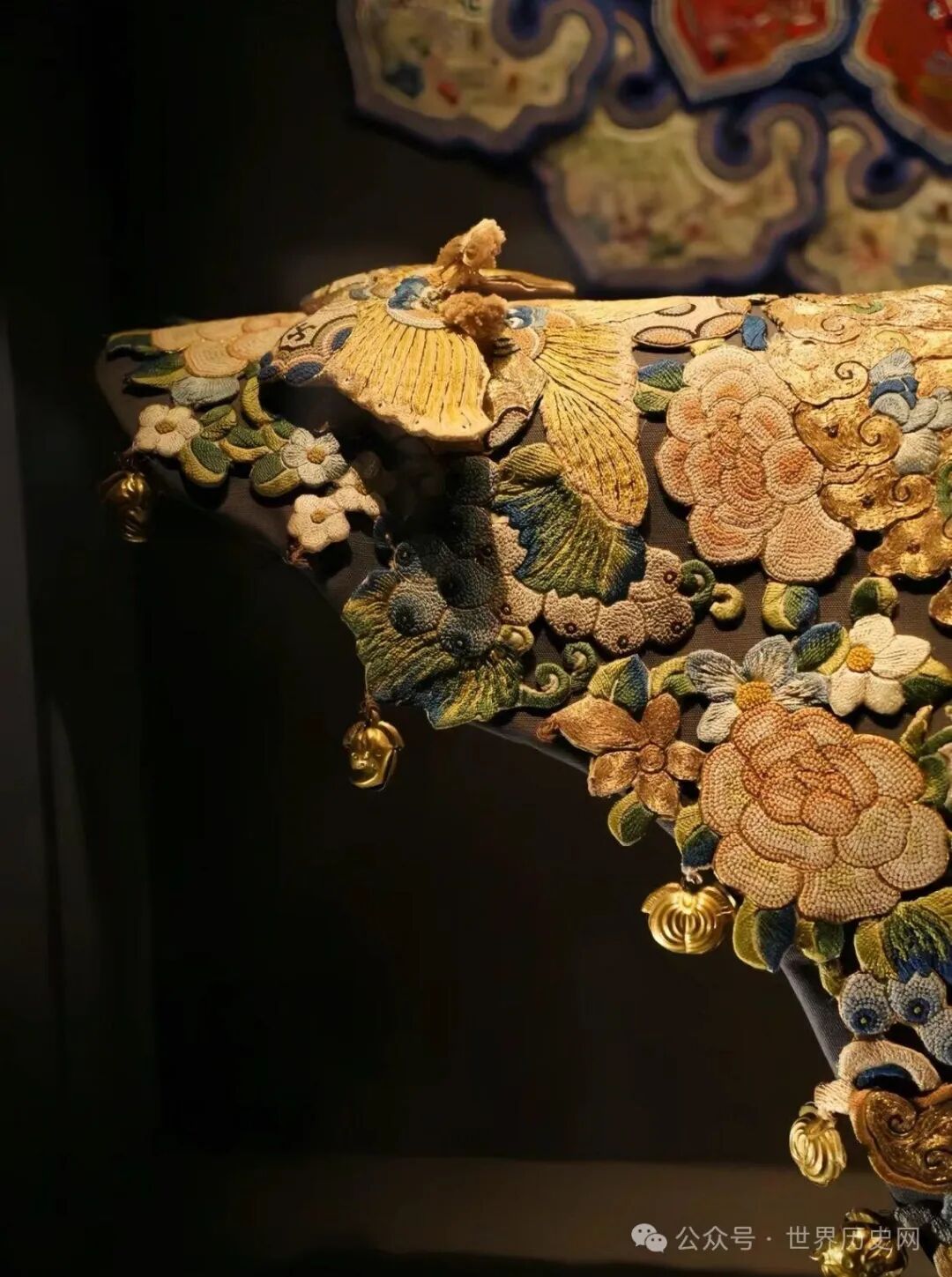 这是收藏在大英博物馆的清代·绣花蝶纹云肩,美到心痛!