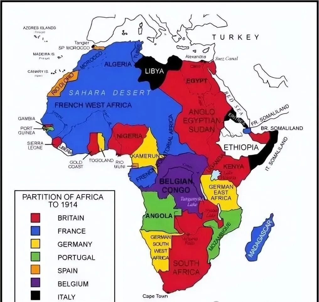 殖民时代欧洲列强把非洲瓜分的支离破碎