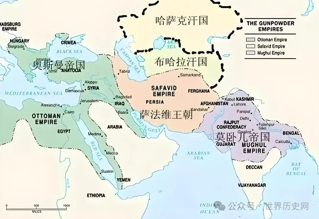 成吉思汗的孙子,忽必烈的兄弟旭烈兀在伊拉克建立伊尔汗国。后来蒙古化的突厥人帖木儿建立的帖木儿汗国又迅速席卷整个西亚(明朝初年)。其兴也勃焉,其亡也忽焉。帖木儿死后,帝国迅速分裂。