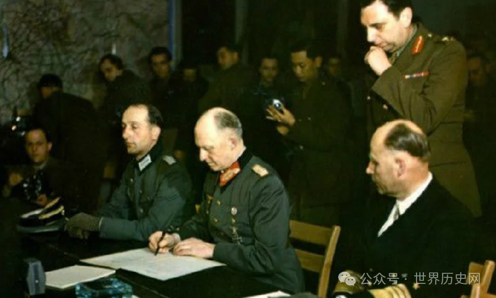 随后,朱可夫代表苏联,英国代表泰德元帅,美国代表斯帕茨上将,法军代表塔西尼上将也一一签字。