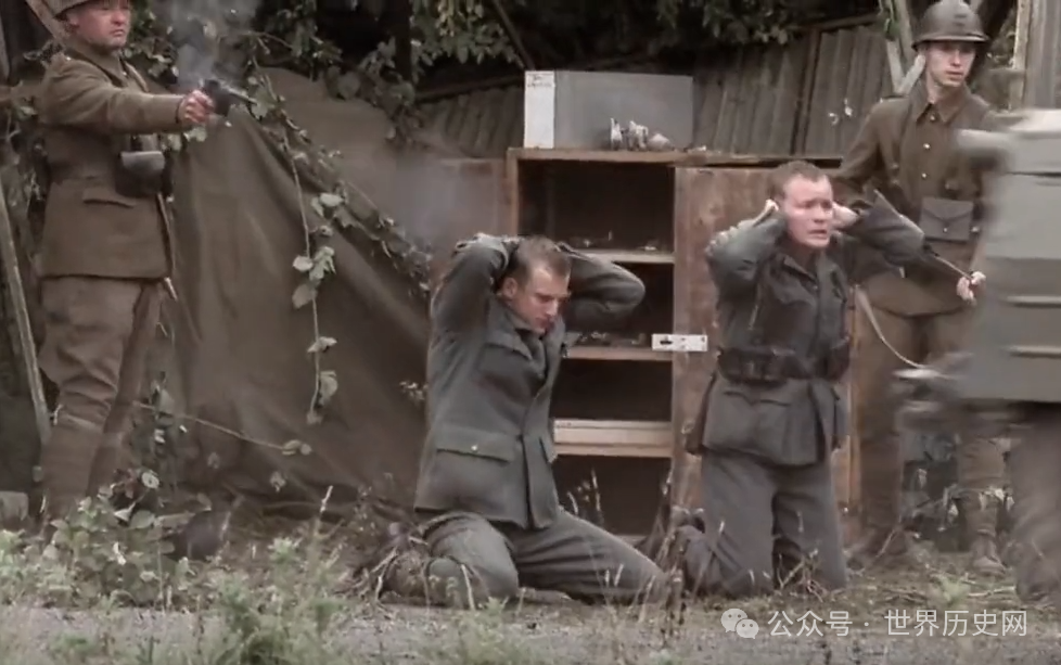 美剧《兄弟连》中的一幕,法军枪杀落单德军