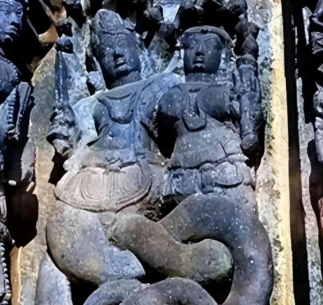 从石像上看,纳迦跟纳迪是一男一女,两人佩戴者印度当地特有的首饰,留着长长的卷发。最重要的是,他们的上半身是人形,下半身则是相互缠绕的蛇尾。