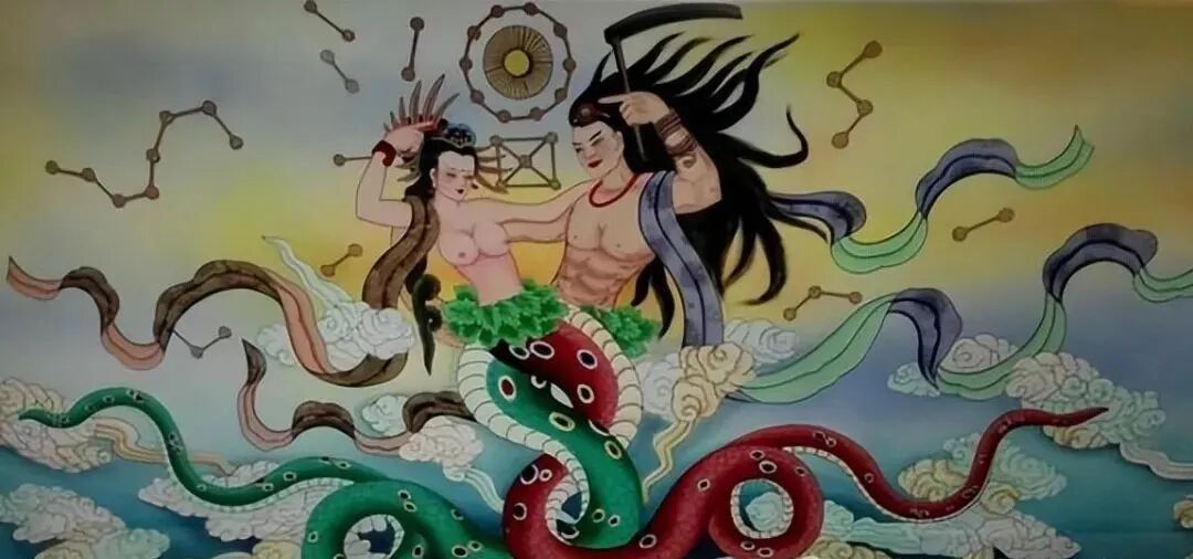 在神话故事里面,伏羲跟女娲是地球上第一对夫妻。女娲是生命的缔造者,而伏羲则是文明的缔造者。《鲁灵光殿赋》中讲到,“伏羲鳞身,女娲蛇躯。”
