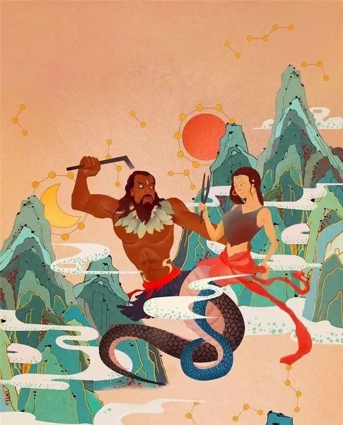在古印度人眼里,纳迦跟纳吉掌管着人间惩罚奖赏的规则。在我们的角度上看,他们半人半蛇的形象与我国的伏羲与女娲的样貌可以说是不约而同。
