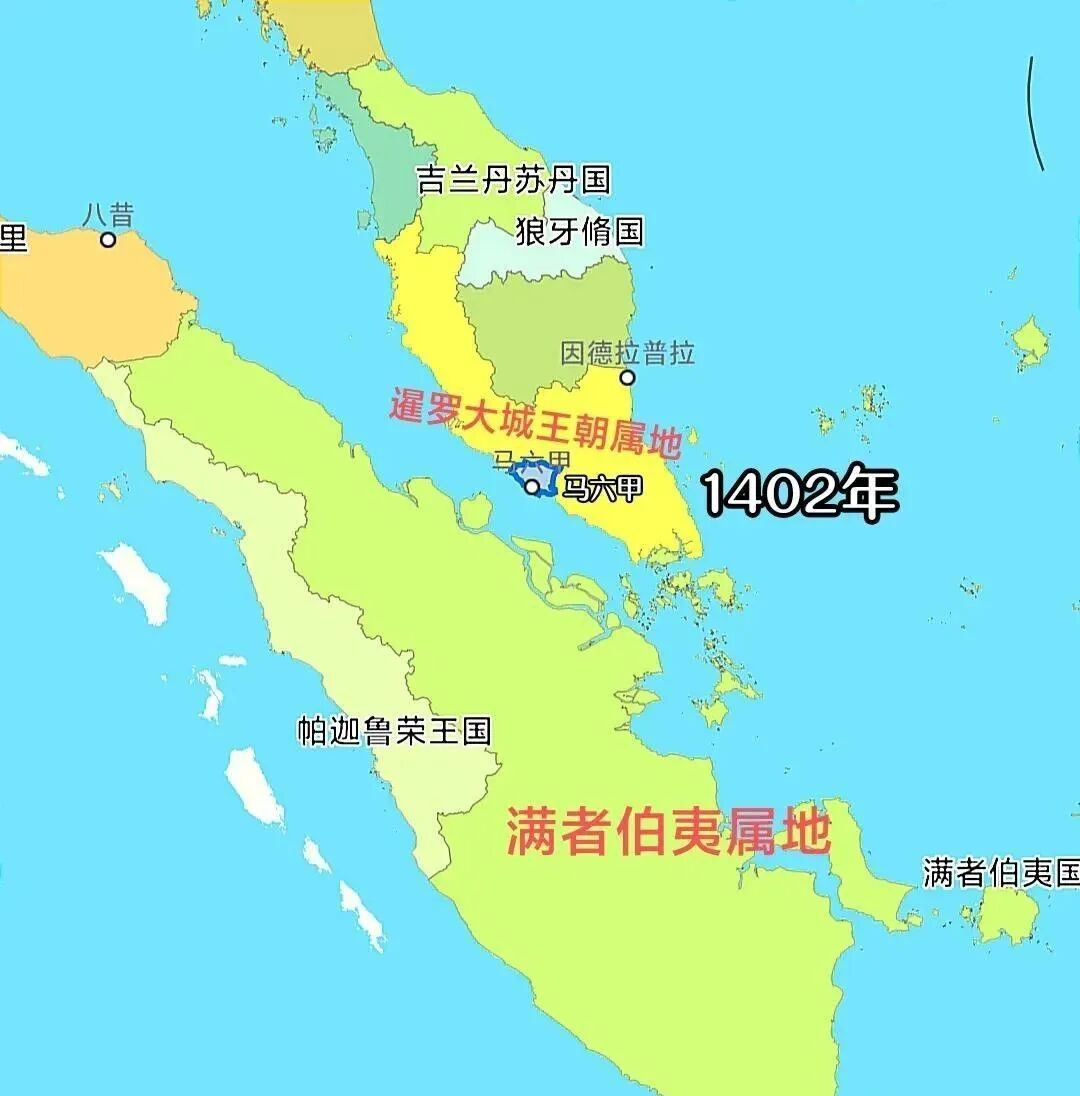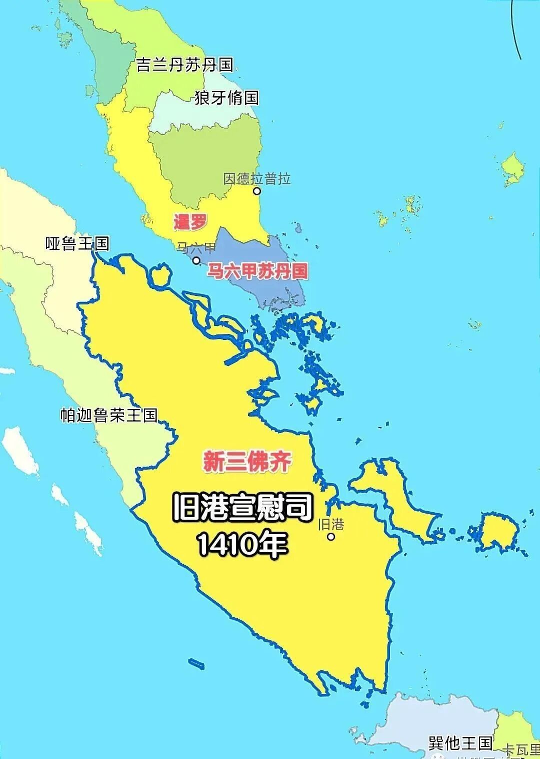 马六甲开始只是一个小城邦,北面是暹罗的势力范围,每年都要向其进贡,南面是强大的满者伯夷王国,后来还有一个由广东人梁道明所建、占据其老家巨港的新三佛齐,可谓险象环生,压力山大。新三佛齐后来一度成为明朝在这里设置的旧港宣慰司辖地。