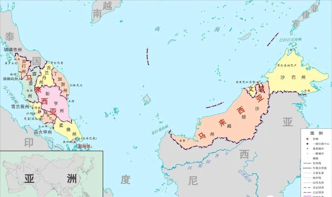 马来西亚的最终版图只包括了马来亚、沙捞越、北婆罗洲三部分,总面积33万平方公里,成为一个横跨海洋两岸的国家。马来亚即西马,沙捞越、北婆罗洲即沙巴州合称东马,二者合起来简称“大马”。