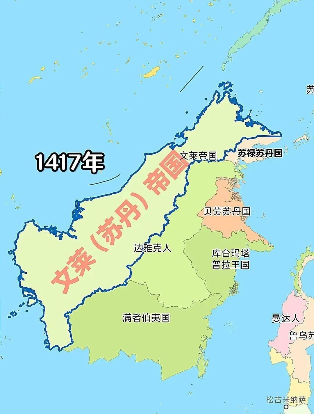可是文莱苏丹国怎么也没想到,他的行为就是引狼入室。布鲁克及其继任者不断蚕食文莱苏丹国的土地,沙捞越王国的领土不断扩大。到1890年,文莱苏丹国只剩下两块很小的土地,且彼此不相连。