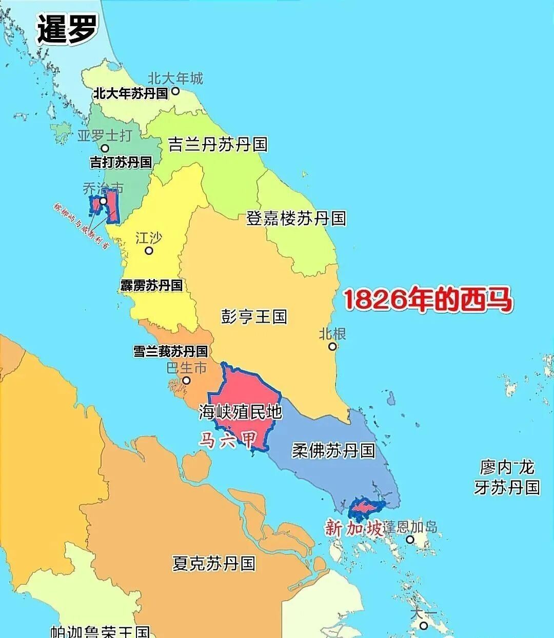 1826年,英国成立了隶属于东印度公司的海峡机构,辖地包括槟榔屿、马六甲和新加坡,这就是所谓的海峡殖民地。