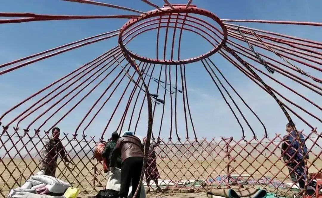 搭建蒙古包需要高超的技艺和丰富的经验,通常由家族中的长者或经验丰富的工匠负责。在草原上,蒙古包不仅是居住的场所,也是家族聚会和社会活动的重要场所。