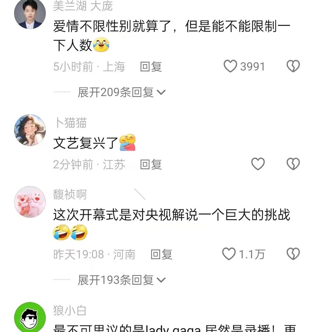 先来看一下网友的各种评论,这次的开幕式可以说是对央视解说一个巨大的挑战。