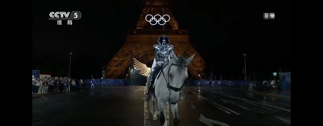 当然也有正常的,有点震撼的。身披奥林匹克五环旗奔驰在塞纳河畔的骑手。