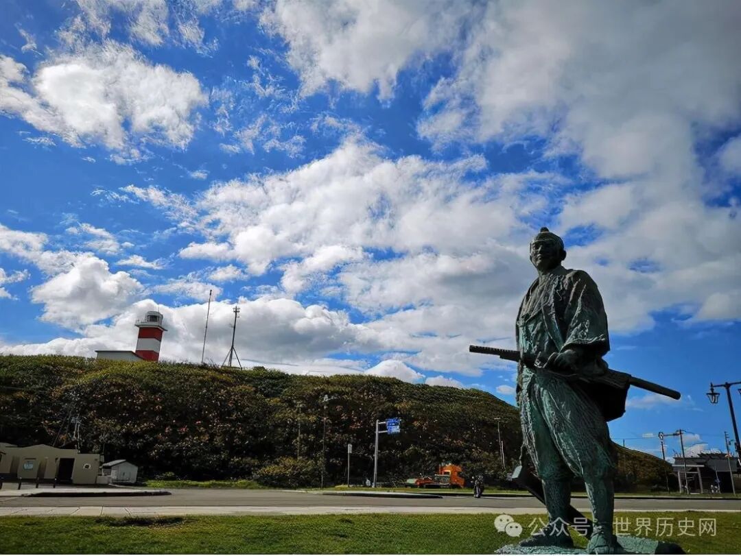 日本方面还在岛上树立了刻写着“天长地久大日本属岛”的界碑。从1799年起日本探险家间宫林藏对北海道、库页岛、千岛群岛等地进行了一系列实地考察。他的探险考察使世界地图上出现了第一个以日本人名字命名的地理名词“间宫海峡”。间宫林藏考察期间日本在色丹岛建立哨所、在库页岛设置界碑。从此日本开始在千岛群岛驻军,同时通过当地的阿伊努人试图与俄国缔交及贸易。