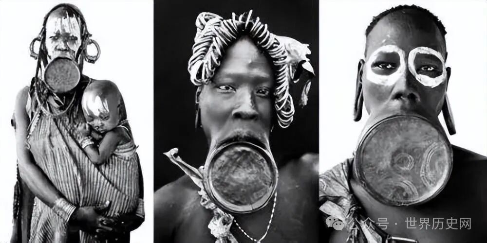 而这里的女子有的不仅嘴上有一个大盘子,就连两个耳朵上也撑着两个大盘子,这让现代人看到纷纷表示震惊!