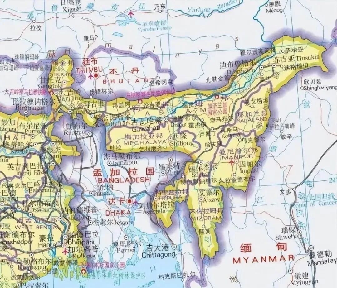 一旦这条“走廊”被别人控制在手中,只需在必要之时切断两边的联系,印度立刻就会失去那6个邦。而阿萨姆邦,恰好就在“走廊”的出口。