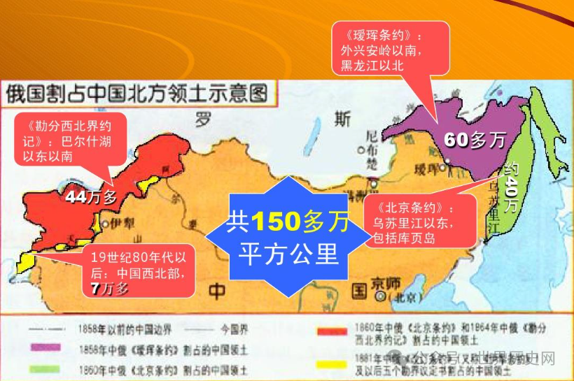 其中还要数临近我们的沙俄从我国侵占的土地多。