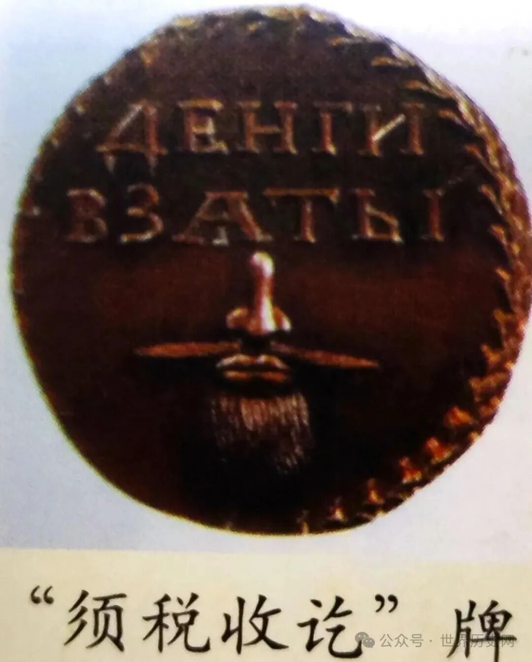 俄罗斯人认为,肥胖和胡须是男人的尊严,是身份和品行高尚的象征。因此,当时几乎所有的俄国成年男子都会蓄须。但是,彼得一世却认为长胡子是陈风陋俗的象征,下达了严格的剪须令,命令在全国推行。后来,由于太多人,特别是贵族的反对,他又追加命令,不愿剪须者要纳高额的重税,贵族者每年最高要纳100卢布(可能相当今天的十几万卢布)。为此,政府还为不愿剪须而纳了重税者设置了“须税收讫”牌,他们上街必须佩带此牌,不然就被强行剪掉胡子。