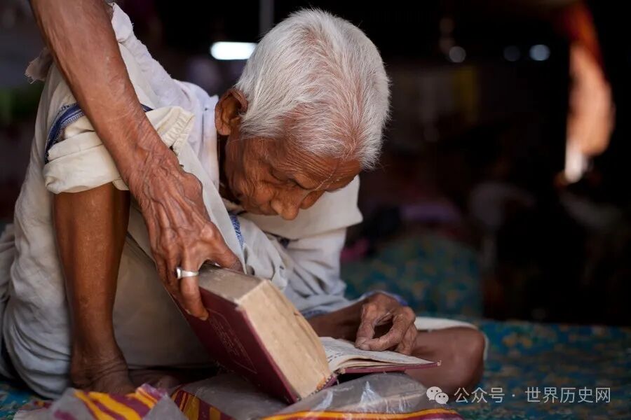 人群中她们有老有少,最年长的已 95 岁,最年轻的仅仅 25 岁。年轻寡妇数量不少,因为在印度,40% 的寡妇在 12 岁以前就已结婚。