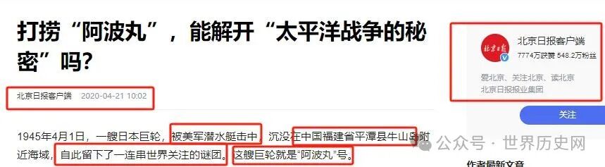 甚至还有人表示,阿波丸在被击中后,不到几分钟就全部沉入了海底。