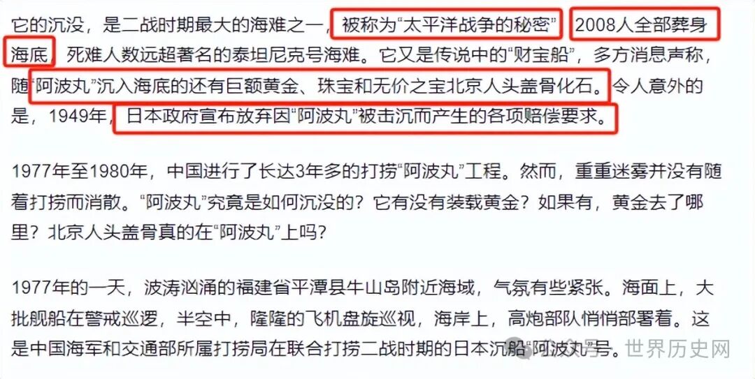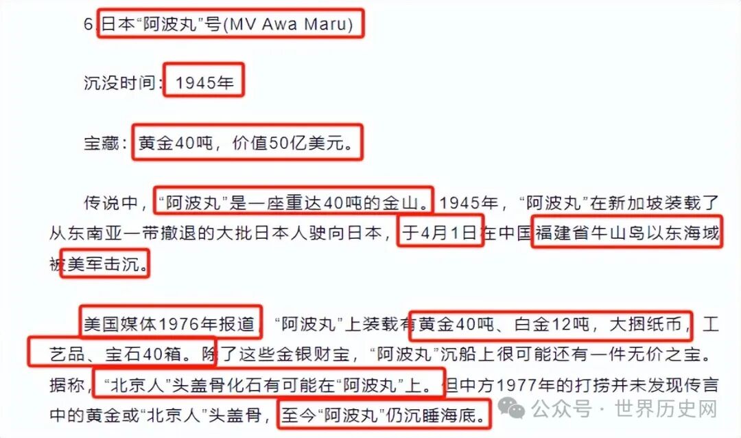 大家这是应该会想到,阿波丸上的财宝难道都是中国的吗?