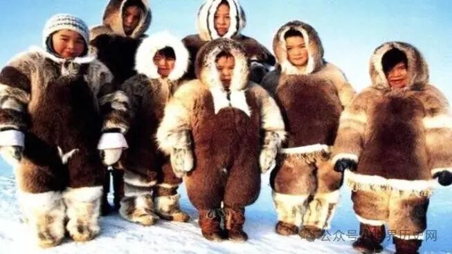 因纽特人的传统服装是用海豹皮和驯鹿皮制成的,这些动物皮毛有着极好的保暖性,而且防水。