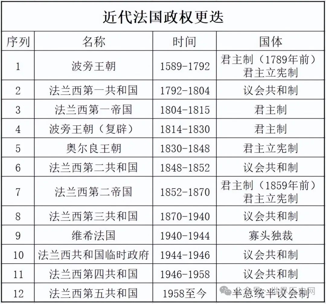 这几个共和国是如何消亡的呢?下面就来总结一下近代法国政权的更迭史。