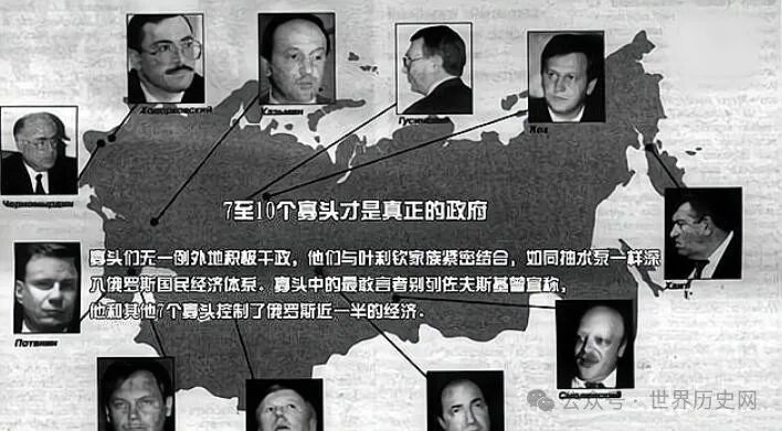 在各领域商人趁势崛起的过程中,俄罗斯七大寡头格局形成,掌控了国家石油、天然气、金融、媒体等几乎所有命脉领域。