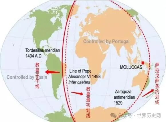1494年6月7日葡萄牙曾和西班牙签订《托尔德西里亚斯条约》在佛得角以西2220公里处划一条线。双方约定此线以东新"发现"的土地属于葡萄牙、此线以西新“发现”的土地划归西班牙。葡萄牙这是打算像切西瓜一样和西班牙瓜分世界。