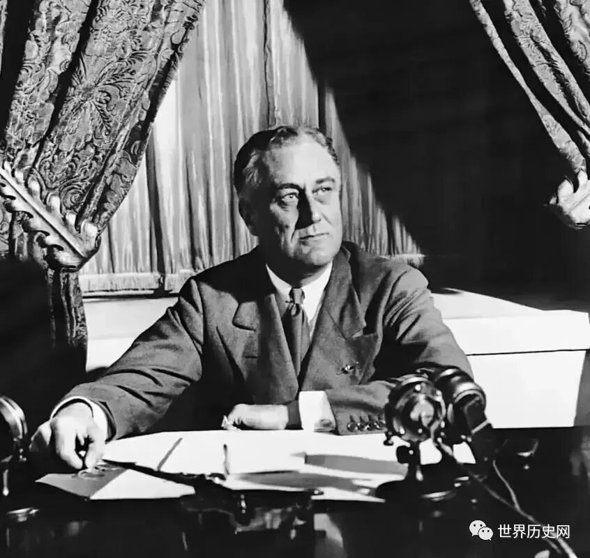1939年,第二次世界大战爆发。富兰克林·罗斯福虽然主张和平,但也意识到美国不能置身事外。他积极支持英国、法国等反法西斯同盟国,向他们提供军事援助,并与英国首相温斯顿·丘吉尔(Winston Churchill)签订了《大西洋宪章》(Atlantic Charter),阐明了战后世界的理想目标。
