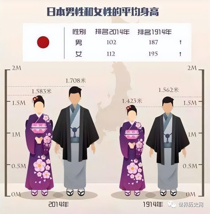 在我国的众多文献记载中,我们不难看出,日本人的矮小是从古至今就存在的,尤其是在二十世纪期间,日本男人和女人的平均身高分别是158.8厘米和141.3厘米。