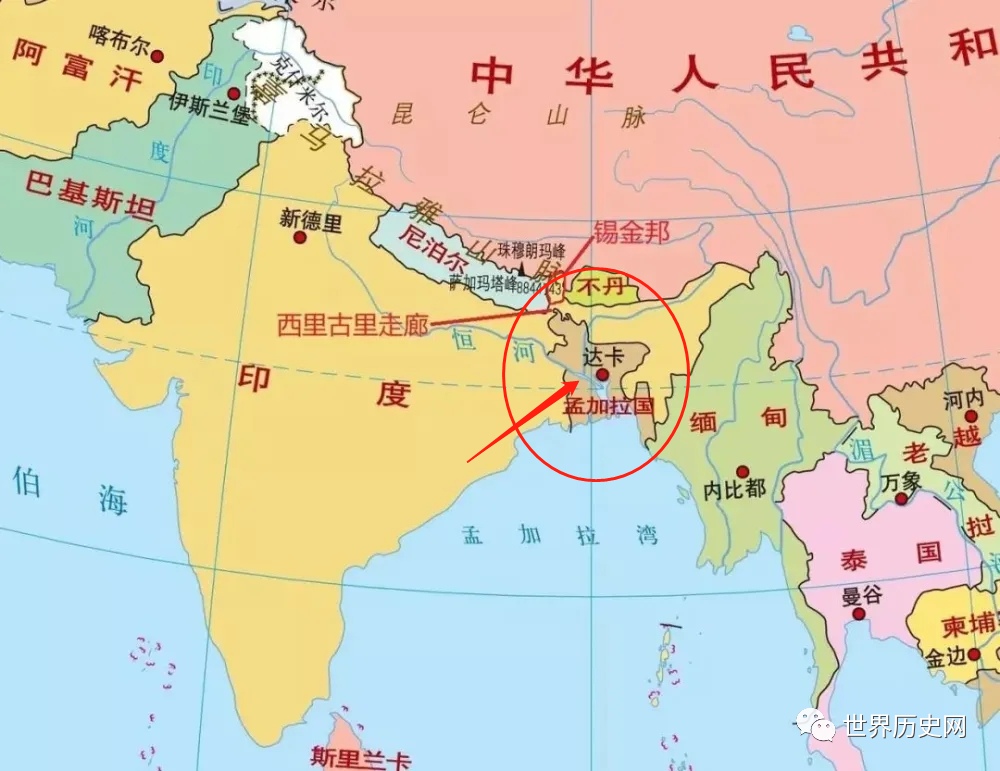 其东、西、北三面,皆与印度相连,南面濒临孟加拉湾,有着充足的海岸线,航运较为便利,而整个国家的总面积,大约在14.8万平方公里左右,首都为达卡。