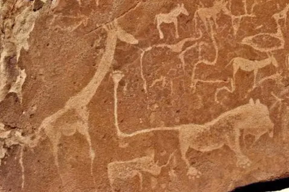 岩画是记录人类想象力的最早证据。非洲是保存着人类岩画最大存量的大陆,共有超过1,000万幅岩画分散在广袤的大陆。它也是岩画历史最早的大陆之一,在纳米比亚发现的一些有关动物题材的岩画已有27,000年的历史。这些岩画具有强烈的自然主义风格,往往与当地的原始宗教有某种联系,反映的是人与自然的关系或人与人的关系。被现代人类学家普遍认为最为原始的南部非洲的桑人(San, 因生活在丛林而被早期欧洲殖民者蔑称为“布须曼人”,Bushmen)却创造了极富艺术魅力和现实主义特点的“布须曼岩画”(Bushmen rock-paintings),包括岩刻和岩画两种。包含各种人物形象和动物形象的岩刻造型生动,散布于沿卡拉哈里沙漠东部以南的荒野岩石或干涸河床的铁石上,内容多为动物造型,有长项鹿、大象、斑马、角马、羚羊、野猪、狒狒、驼鸟、飞禽等。岩画中则除动物之外,还有各种人像,或从事狩猎,或从事生产,散布于奥兰治自由邦、德兰士瓦省、开普省以及邻近的纳米比亚、津巴布韦和莫桑比克等国。这些岩刻和岩画的创造年代始于公元前6000年。金属冶炼技术是古代非洲文明的亮点之一。从约公元前500年开始出现的炼铁术在非洲如此普遍,以至使考古学家启用了“非洲铁器时代”这一专有名词;古代的黄金冶炼使非洲成为欧洲人梦寐以求的地方;青铜的冶炼更使非洲艺术达到炉火纯青的地步。[9]