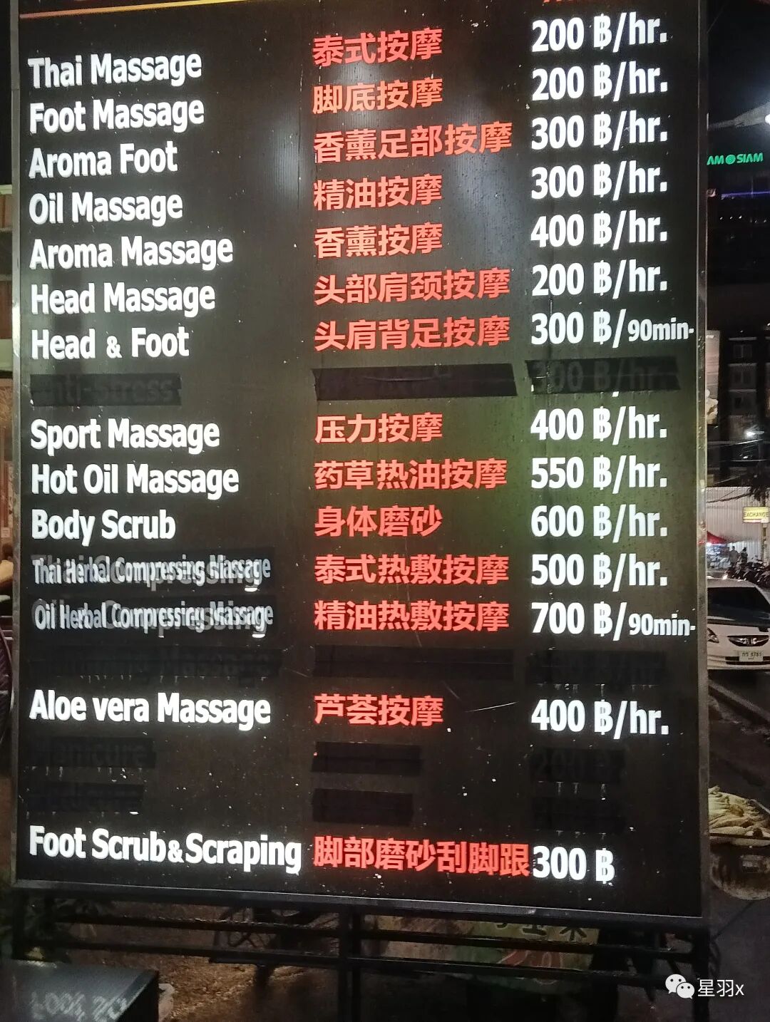 我体验的是最基础的那个,足浴,或者按摩都是两百泰铢,其它就很贵,不知道什么内容,反正纯洁如我也不懂,就是忘了拍照了(后来发现有拍照,忘了)。