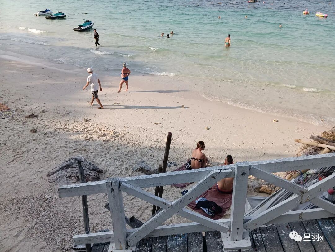 然后上岛、游泳免费,租个躺椅一百泰铢(二十块),你也可以不租,水与干粮自带,就算租了躺椅,一共也才三十二块,国内同等享受估计得五百元到两千元(顶级浴场)。
