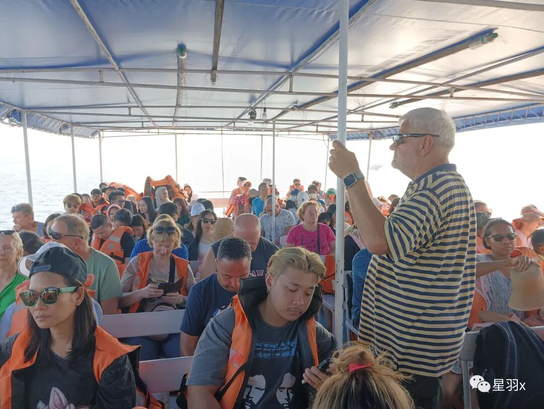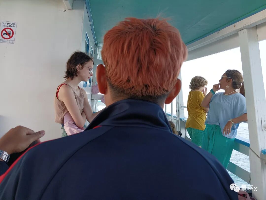渡轮照例是分上下两层的,正常情况下,中国游客比较愿意占据视野更开阔的上层,但这是在热带的泰国,所以都很自觉地往下层而去,将顶层让给了更喜欢沐浴热带阳光的欧美游客。