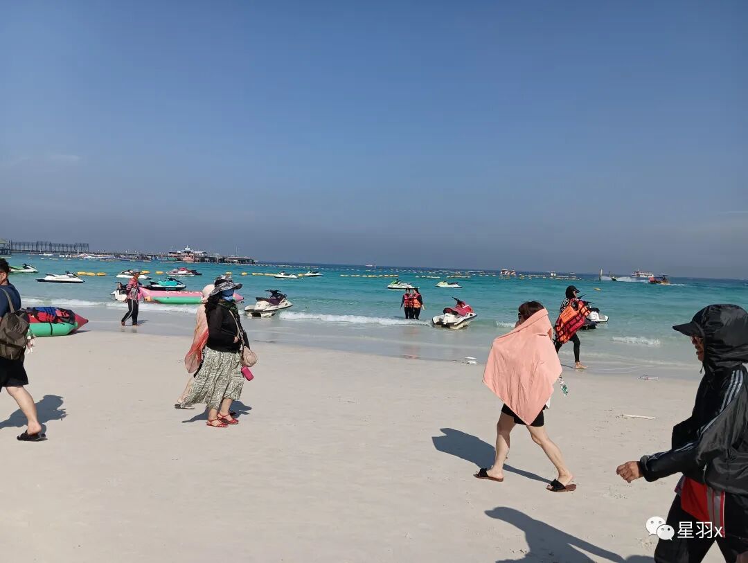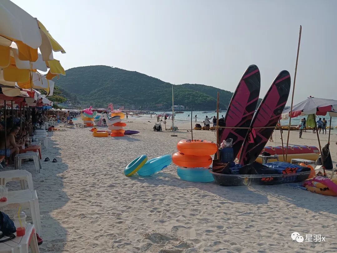 游客们——主要是年轻人,纷纷参与水上运动,尤其是坐着橡胶艇被快艇拖弋着在海上疾驰,然后在靠近海边时,快艇划出一个恰到好处的弧度,让后面的橡胶艇突然受到冲击而产生离心力,让上面的游客全部落水,原以为这是偶然,但看过一艘又一艘橡胶艇侧翻,才明白这是故意的,反正游客们纷纷大呼小叫,玩得不亦乐乎。