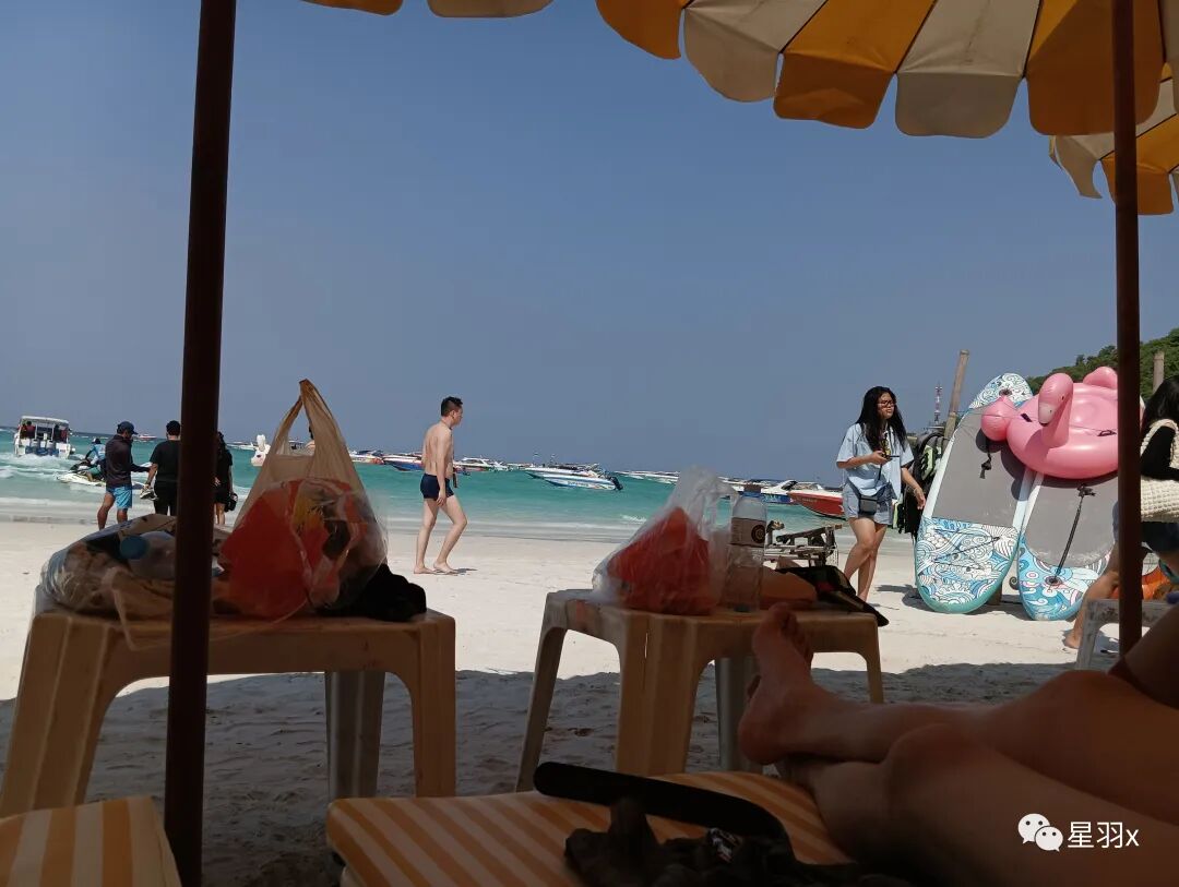 由于天气实在太热,上岛后人就粘在躺椅上了,也很怪,天这么热,但凉伞下沐浴着海风,却很凉快,难怪这么多人会迷恋。
