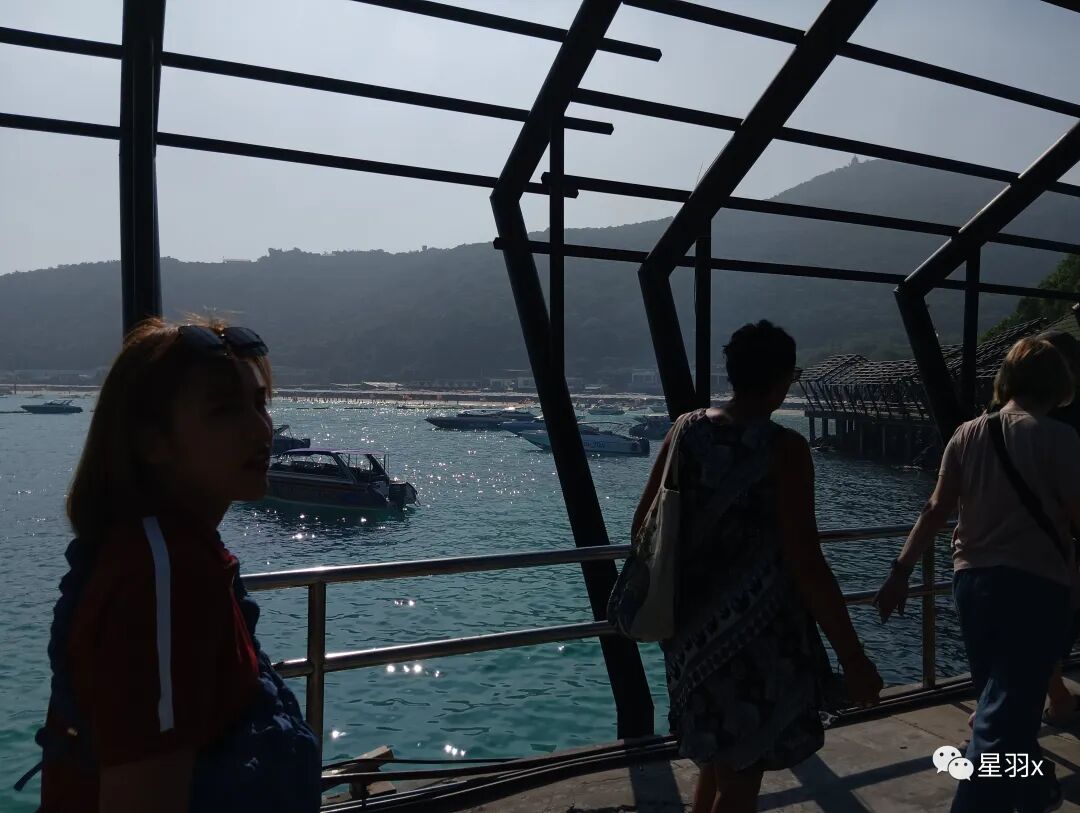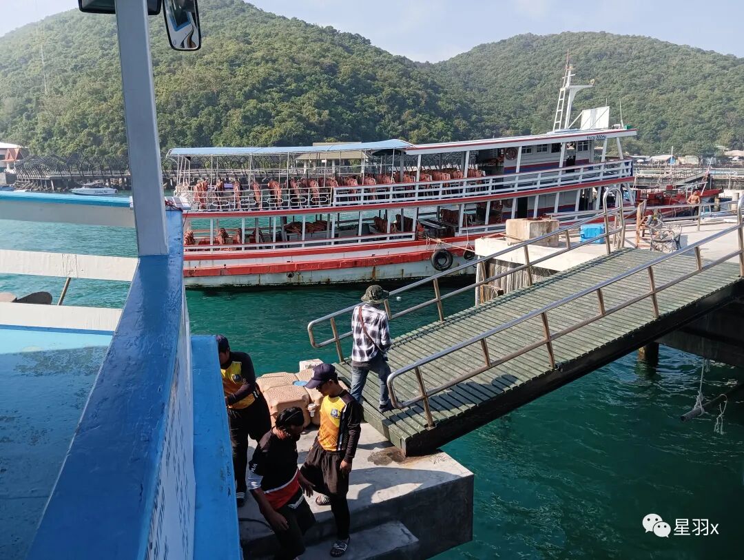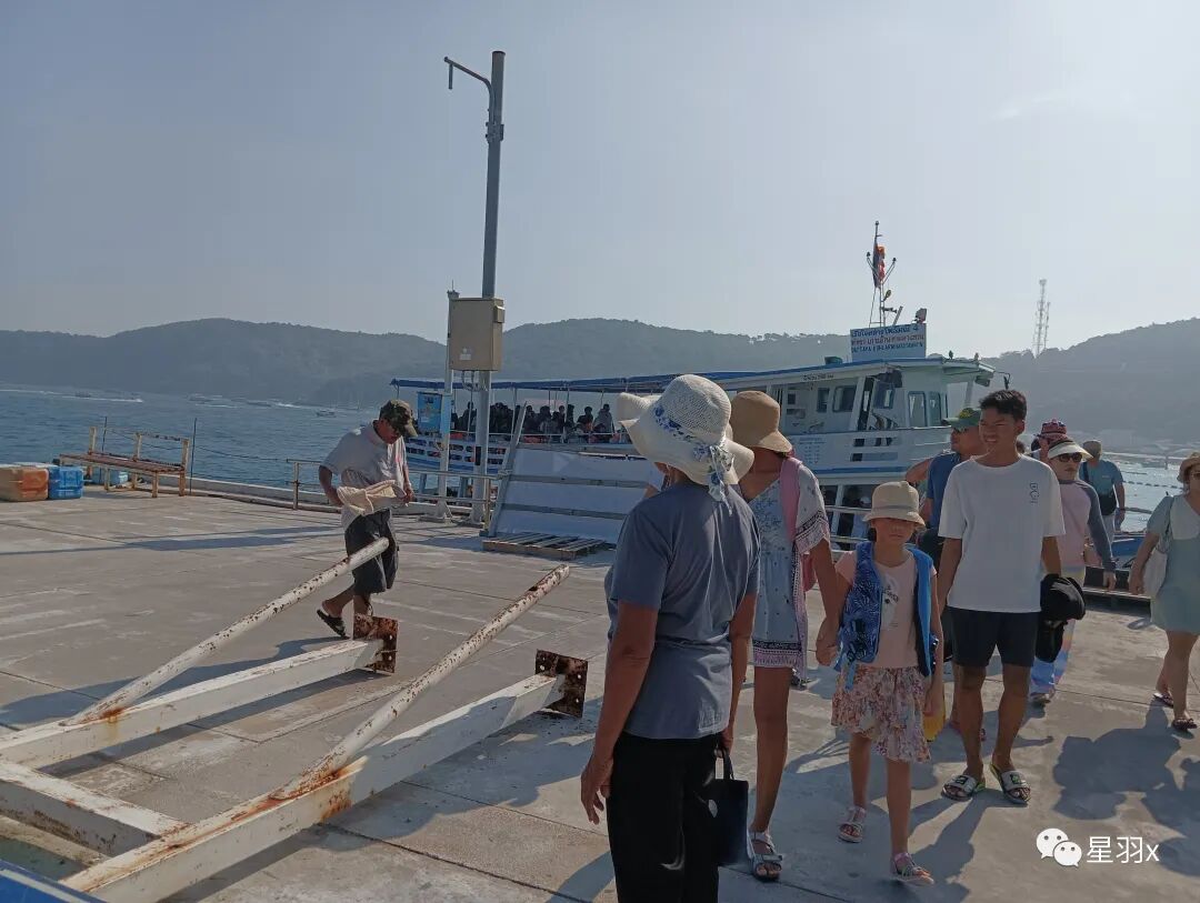 一直等到下午四点左右,我们离岛前先浏览完右边度假村、栈道(见上图)就回到码头,渡轮已经在那里等着我们了。