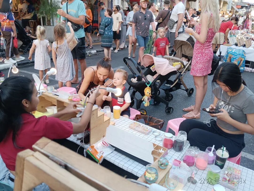 游客无非就是欧美老外,中国人以及当地人,以及斯里兰卡、印度孟加拉人,少量黑人,平时在街上以及各种公园商店,看到的当地人都是男的,因为女性需要养家糊口,但到了周末夜市,当地女性不做生意的都出来了,而男的逛街少很多,所以,当地人以女性为主,衣着清凉,赏心悦目,整个夜市非常热闹。