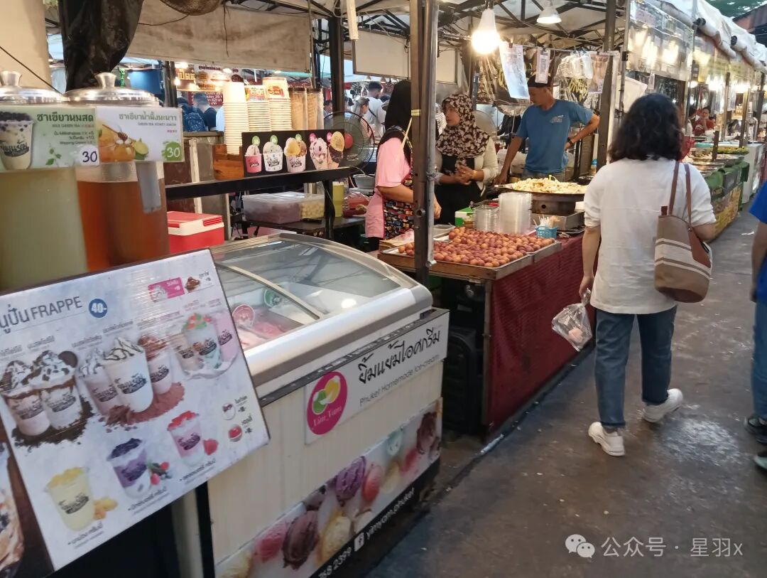 游客注意的主要是各种美食,但事实上,想吃也吃不了太多,我一共只吃了三样点心,外加一点冷饮,花费一百多泰铢,不到人民币三十块,就再也撑不下了,所以,主要是饱饱眼福。