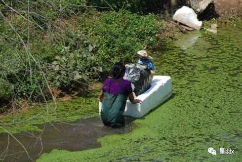 却见白天堆积如山的货堆旁,一个个越南人正在紧张忙碌着,将货物搬到不远处的池塘边,放到土制的白色的塑料泡沫筏子上。