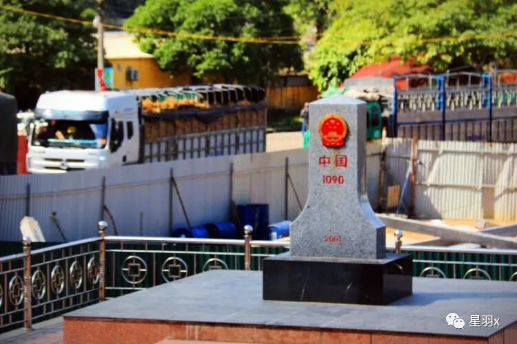 在关口附近,有一块界碑,与哨兵、国旗一起,成为游客的拍照对象。