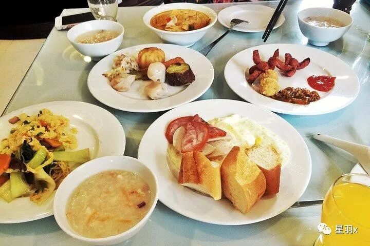 免费早餐大致分四类,第一是主食,包括并不限于面包蛋糕意大利面条鸡蛋等也有粥,包子、圆子(越南饮食习惯中西结合),番薯、饼干之类,大的旅馆有二三十样,小的五六样,我住的这家旅馆是一路的(就是越南政府给他们划好的土地,大约四乘以二十米,所以房子狭长,极少两路以上,那都是大旅馆)早餐主食少一点,大约十样上下;第二是饮料类,牛奶果汁咖啡之类,有的叫不出名字,有七八样,第三是荤素菜,大概有十多种,因为我所在的旅馆不大,有的大的旅馆菜肴种类非常多,我觉得他们会亏本,第四是各种水果,越南水果多嘛,所以不稀奇。